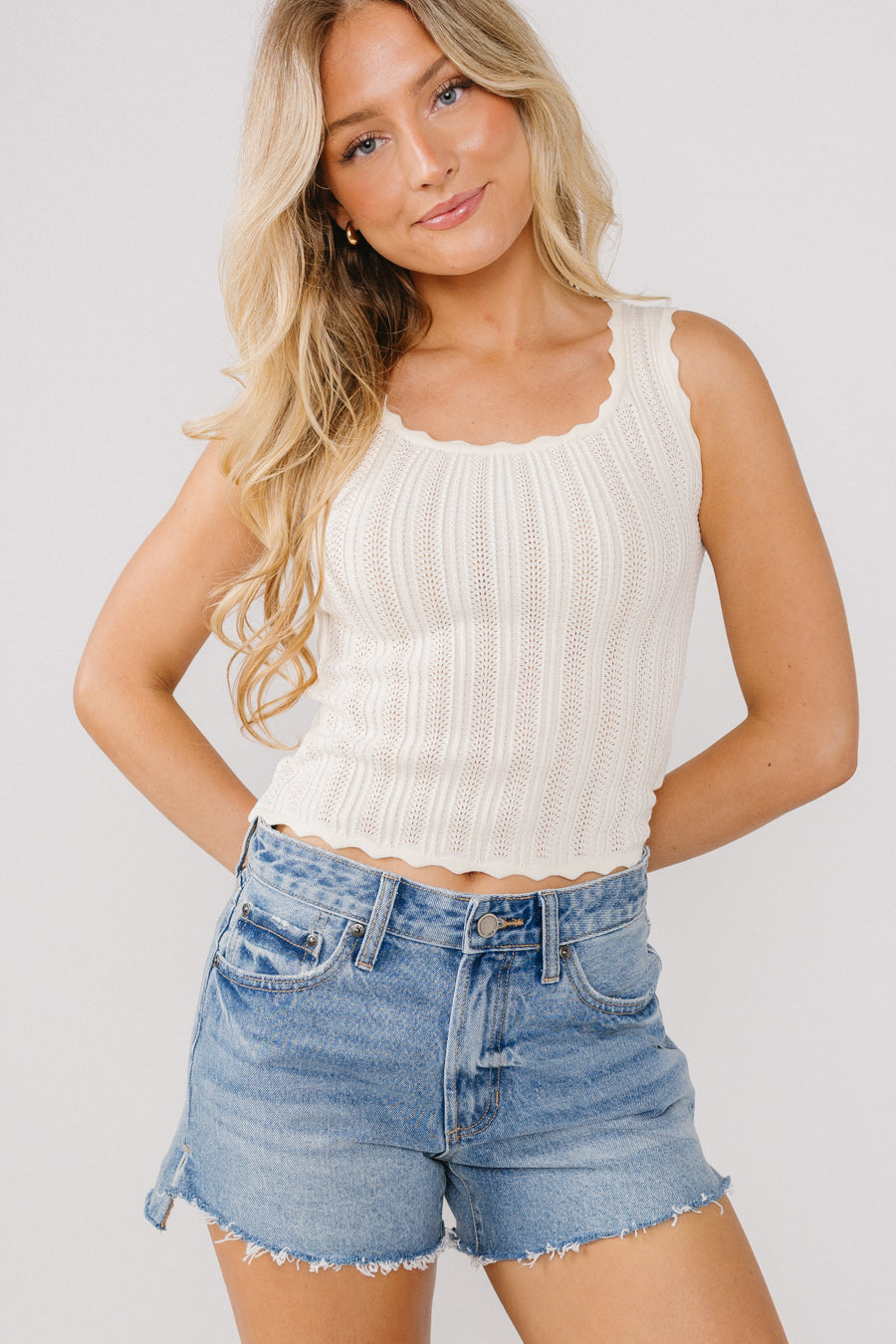 Pointelle knit tank top