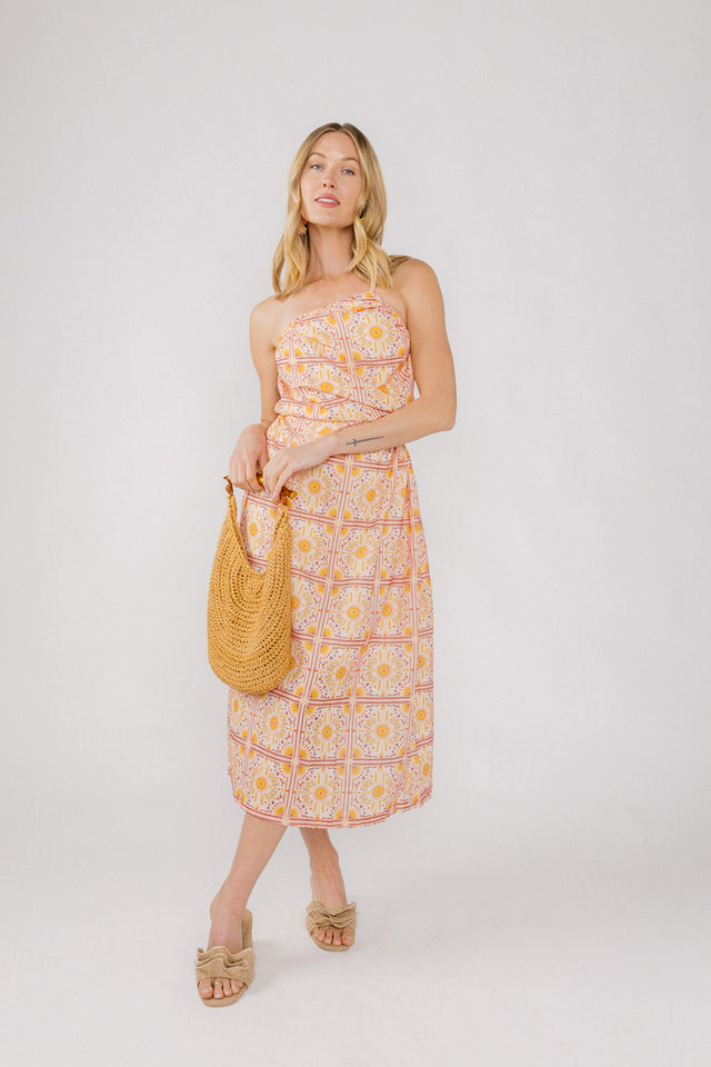 Pink and orange print dress