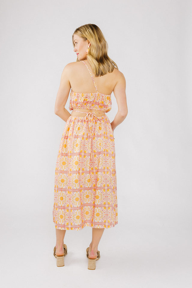 Elastic at bust and back with self-tie detail